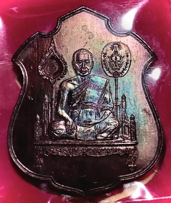 วัดใจ...เหรียญนั่งธรรมาสน์ พระมหาสุรศักดิ์ วัดประดู่ เนื้อทองแดงรมมันปู หมายเลข 973 (เก้าหน้าเจริญรุ่งเรืองก้าวหน้า) ที่ระลึกอายุวัฒนมงคล 60 ปี ผิวรุ้งทั้งหน้าและหลังเหรียญ เหรียญจริงสวยมากๆพร้อมกล่อง