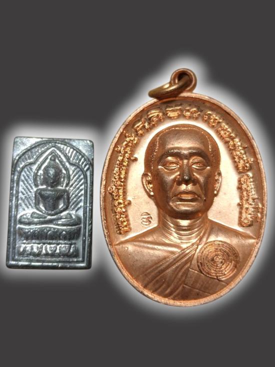 A3778.ยกคู่!! หลวงปู่ศุข พิมพ์ประภามณฑลรัศมี หลังยันต์ เนื้อชินตะกั่ว + วัตถุมงคล หลวงพ่อเจ็ก จนฺทปชฺโชโต วัดหนองเเก จ.ชัยนาท |