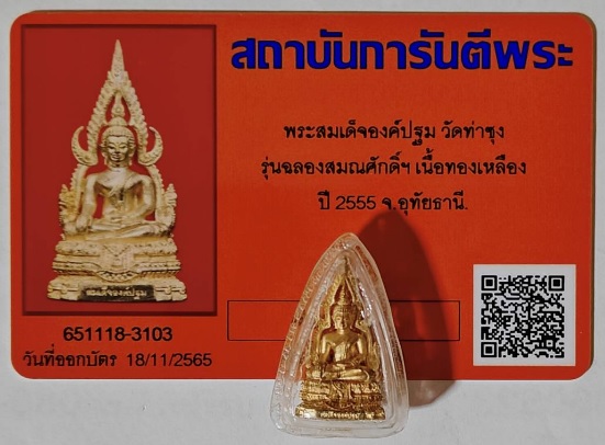 สมเด็จองค์ปฐมฯ รุ่นที่ระลึกฉลองฉลองสมณศักดิ์พระภาวนากิจวิมล 2555 วัดท่าซุง เนื้อทองเหลือง พร้อมบัตรรับรองพระแท้ |