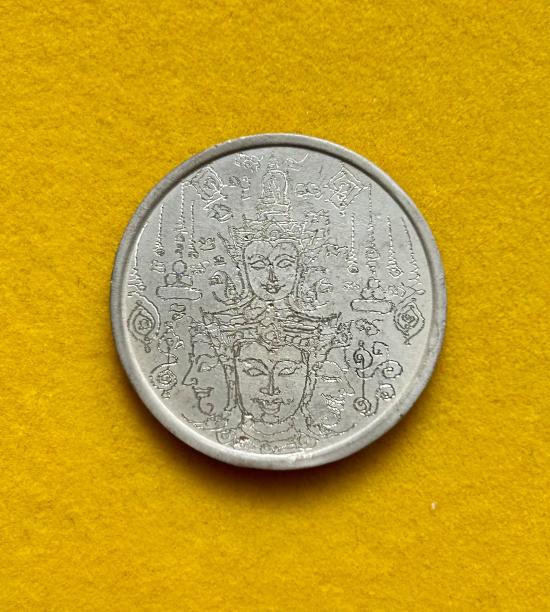 "เนื้อเงินนำฤกษ์หลังเรียบ จารมหายันต์พระพรหมธาดา" 1 ใน 9 เหรียญ (รอยจารไม่ซ้ำแบบ)
