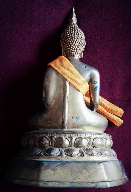 รายละเอียด พระบูชา ปางมารวิชัย หน้าตักประมาณ 4 นิ้ว 5 หุน (เกิน 4.5 นิ้ว) ประทับนั่งบนผ้าทิพย์ ฐานบัวคว่ำบัวหงายงาม ๆ เนื้อทองเหลือง สีเริ่มออกคล้ำแดง ดูเก่าดี ผูกผ้าเฉวียงบ่ามาแต่เดิม สภาพสวยตามรูป ส่งฟรีทั่วไทย รับประกันตามกฎครับ