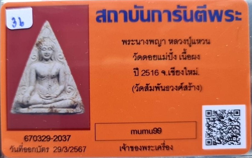 @## พระนางพญา.. ลป.แหวน วัดดอยแม่ปั๋ง จ.เชียงใหม่ (พิธีปลุกเสกใหญ่ใหญ่ วัดสัมพันธวงศ์ กทม.จัดสร้าง ) ปี2516 เนื้อผง พร้อมบัตรรับรอง สภาพสวยมาก รับประกันความแท้ตลอดชีพ พิธีปลุกเสกในวาระแรก ปี 2516 -วัต |