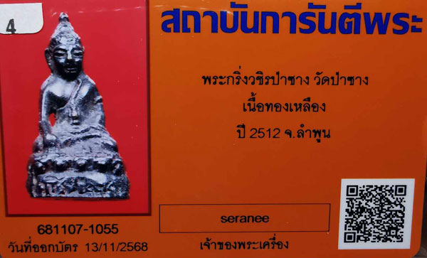 พระกริ่งวัดป่าซาง เนื้อทองเหลือง กริ่งดัง ปี2512 จ.ลำพูน + บัตรG-pra สภาพเดิมค่ะ สภาพตามรูปทุกประการค่ะ