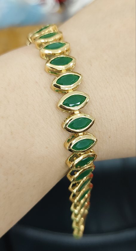 เทขาดทุน+ กำไลแขนมรกตทรงมาคียาว 7.นิ้ว งานจิวเวลลี่ชุบทองแท้ |