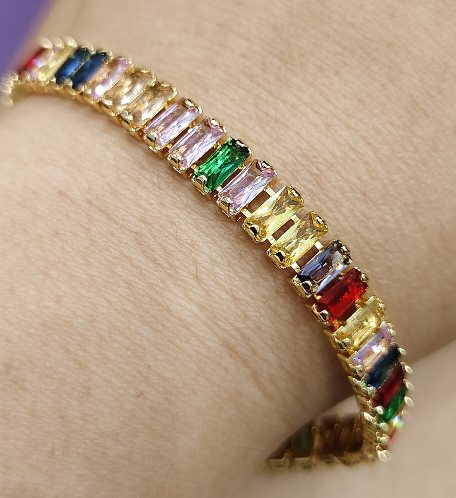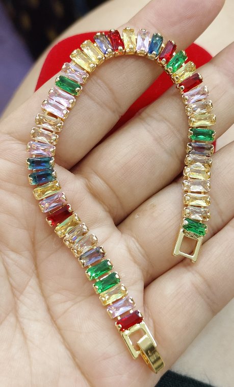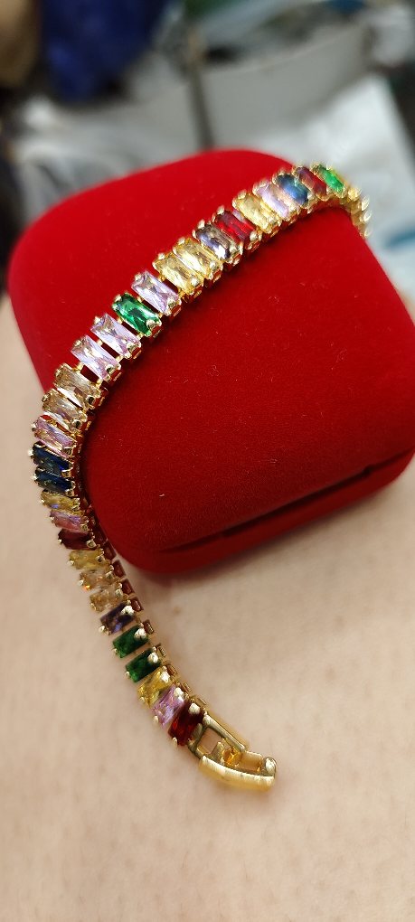 เทขาดทุน+ กำไลข้อมือนพเก้ายาว 7.นิ้ว งานจิวเวลลี่ชุบทองแท้ |
