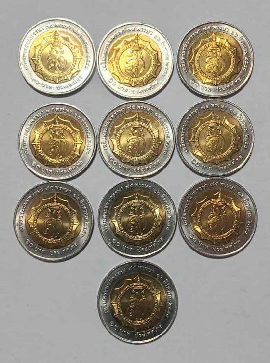 เหรียญ 10 บาท สองสี ที่ระลึกสมเด็จพระนางเจ้าสิริกิติ์พระบรมราชินีนาถพระพันปีหลวง เฉลิมพระชนมพรรษา 75 พรรษา 12 สิงหาคม 2550 เหรียญไม่ผ่านใช้งานแกะถุง จำนวน 10 เหรียญ สวยๆ ครับ |
