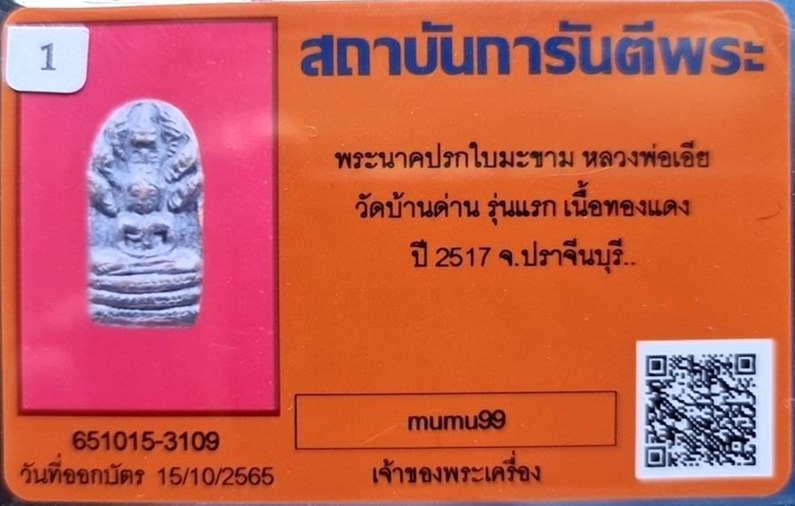 #@@ พระนาคปรกใบมะขาม หลังธรรมจักร หลวงพ่อเอีย เนื้อทองแดง รุ่นแรก พ.ศ. 2517 พร้อมบัตรรับรอง หายากมากครับ ไม่ค่อยเจอ พระสวย ผ่านการใช้มามาน้อย...ตอกโค๊ดดอกจันหลังครับ..องค์เล็กจิ๋วมาก..น่าใช้....แท้.. |