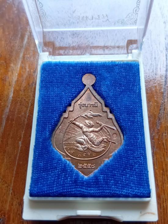 เหรียญหลวงพ่อรุ่ง วัดท่ากระบือ รุ่นรุ่งบารมี ปี 2558 หลังหนุมานเชิญธง |