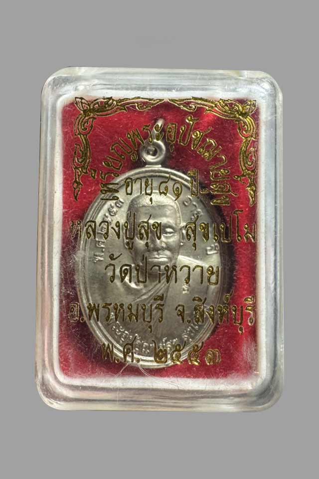 เหรียญพระอุปัชฌาย์สุข อายุ81ปี หลวงปู่สุข วัดป่าหวาย ปี2553 เนื้ออัลปาก้า |