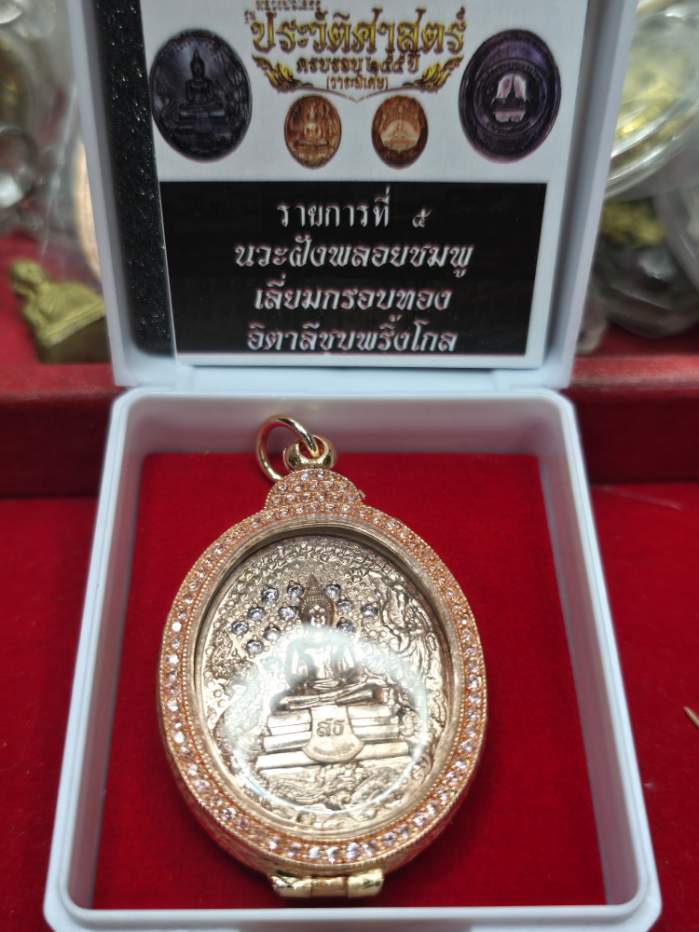 เหรียญหลวงพ่อโสธรรุ่นประวัติศาสตร์ครบรอบ 255 ปี วาระพิเศษ (วัดสร้าง) เนื้อนวะฝังพลอยชมพู เลี่ยมกรอบทองอิตาลีชุบพริ้งโกล เลข111 พร้อมกล่องเดิม |