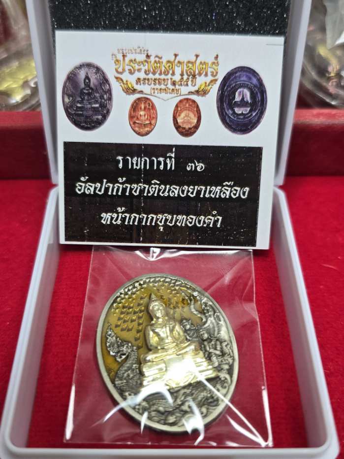 เหรียญหลวงพ่อโสธรรุ่นประวัติศาสตร์ครบรอบ 255 ปี วาระพิเศษ (วัดสร้าง) เนื้ออัลปาก้าซาตินลงยาเหลืองหน้ากากชุบทองคำ เลข155 พร้อมกล่องเดิม |