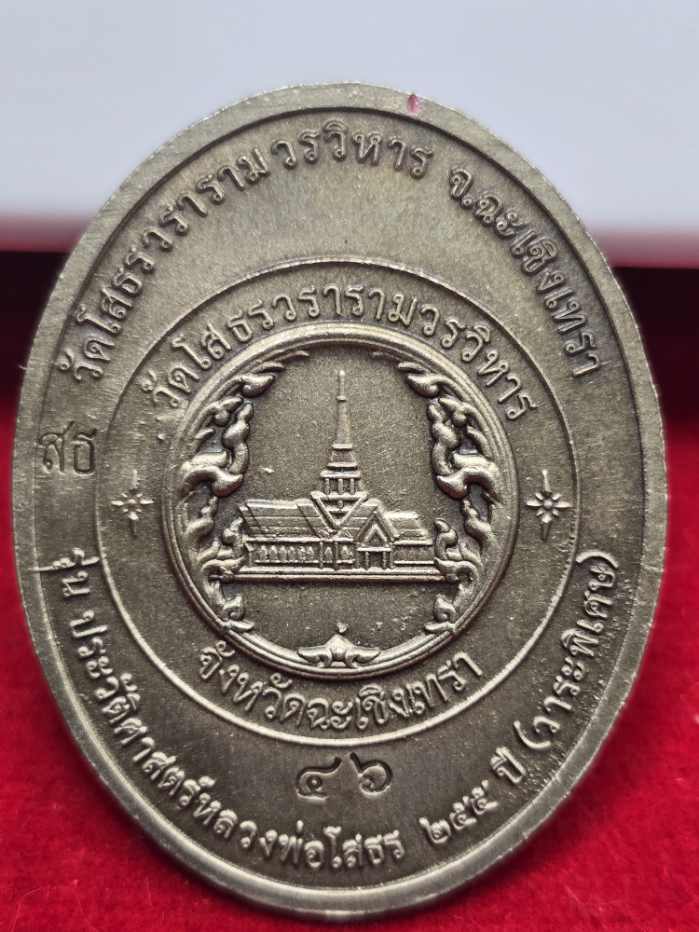 เหรียญหลวงพ่อโสธรรุ่นประวัติศาสตร์ครบรอบ 255 ปี วาระพิเศษ (วัดสร้าง) เนื้ออัลปาก้าซาตินลงยาชมพูหน้ากากชุบทองคำ เลข46 พร้อมกล่องเดิม |