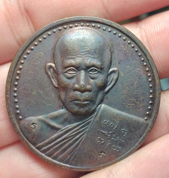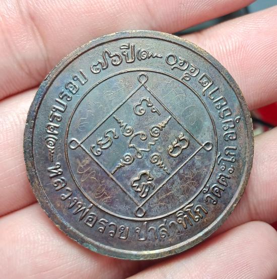 เหรียญบาตรน้ำมนต์. หลวงพ่อรวย วัดจะโก ปี40 เนื้อทองแดง ครบรอบ76ปี มีรอยจาร หน้าหลัง