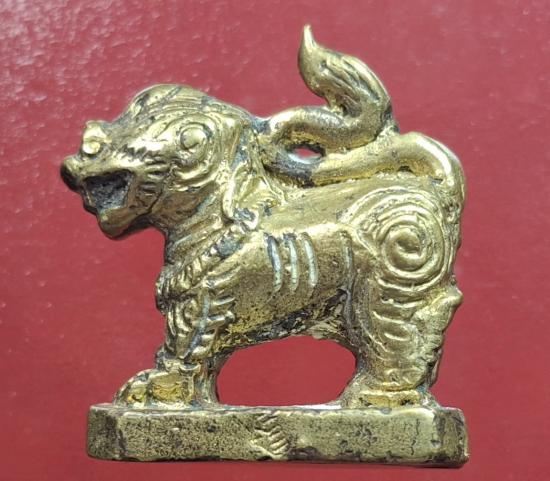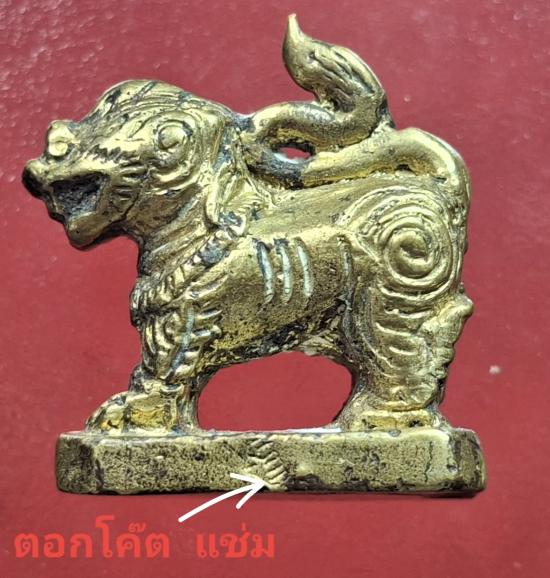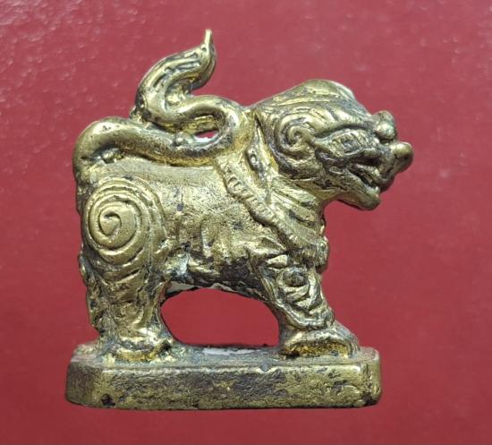 รูปหล่อสิงห์ เมตตา มหาอำนาจ โภคทรัพย์ โชคลาภ หลวงพ่อแช่ม วัดดอนยายหอม จ.นครปฐม ปี ๒๕๒๙ เนื้อทองเหลือง ตอกโค้ด (แช่ม) สร้างน้อย
