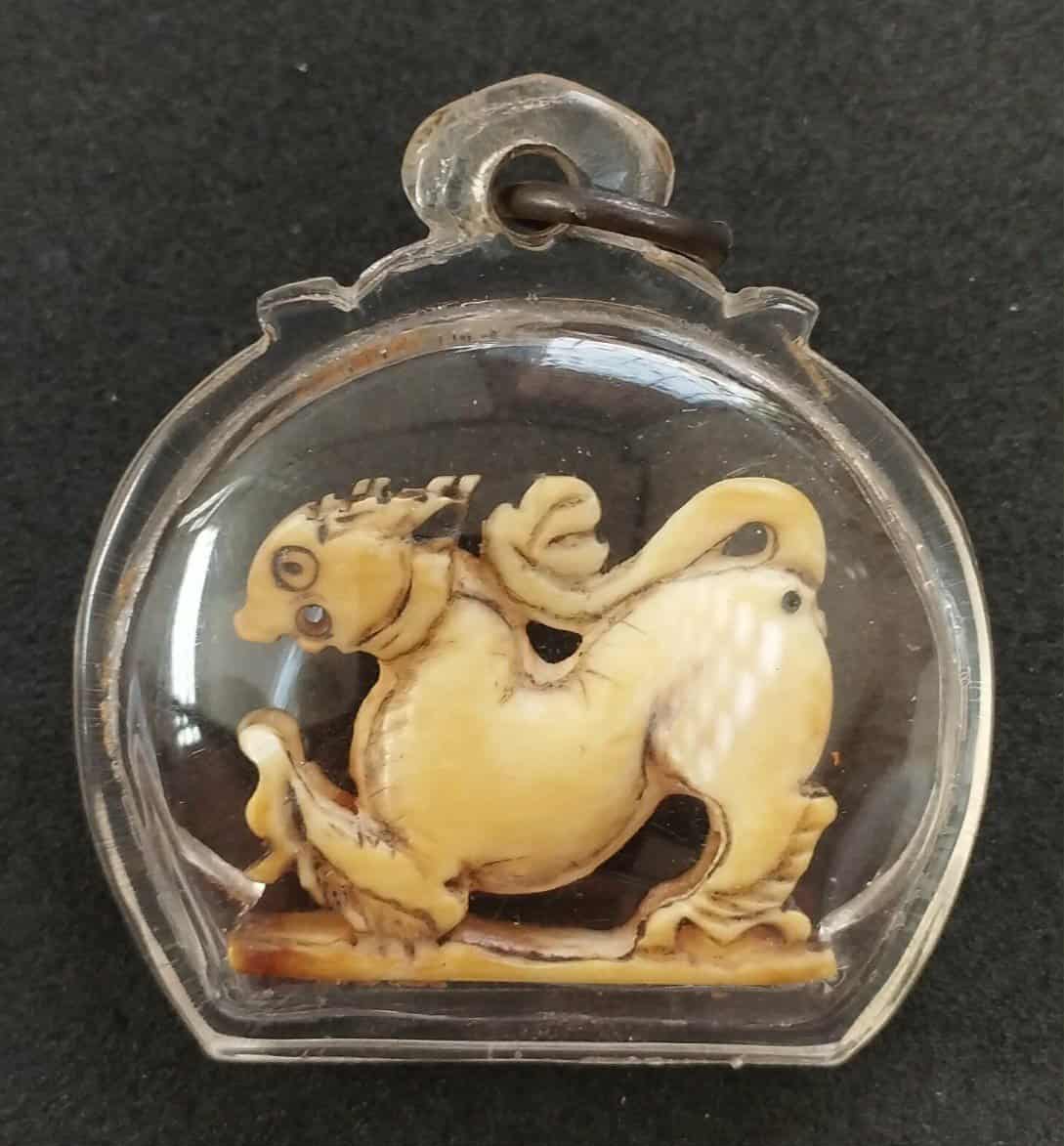 สิงห์งาแกะ ขนาด 3 เซน ไม่ทราบที่ เก่า เลี่ยมกันน้ำไว้