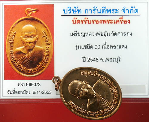 <<> เหรียญแซยิด ๙o ปี หลวงพ่ออุ้น วัดตาลกง เนื้อทองแดง สวยๆ พร้อมบัตร เคาะเดียว <>> |