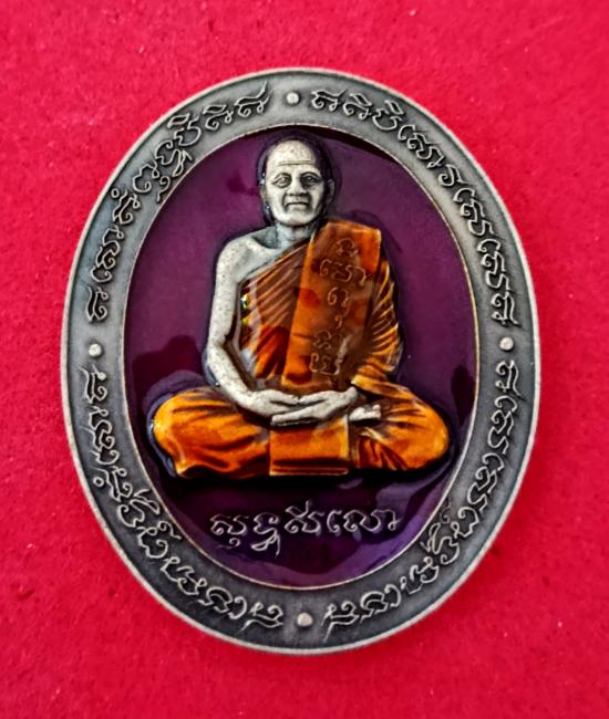 หลวงพ่อทอง วัดบ้านไร่ เหรียญรุ่น 5 แชะ เนื้อเงินรมซาติน ลงยาม่วง ลงยาจีวร NO.๒๙๑
