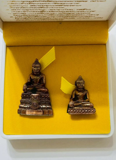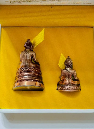 วัดใจ พระพุทธสิหงค์ รุ่นสิหิงค์55 ณ วัดพระมหาธาตุวรมหาวิหาร เนื้อนวะโลหะก้นเงิน 2 องค์ เลข55 เลขสวย |