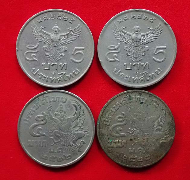 2.เหรียญ 5 บาท ครุฑเฉียง ปี 2520 + ปี 2522 (อย่างละเหรียญ)