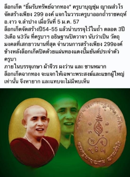 **วัดใจ** ล็อกเก็ต "ยิ้มรับทรัพย์ฉากทอง" ครูบาบุญชุ่ม ปี 54 สร้างแค่ 299 องค์ หายากมากค่ะ |