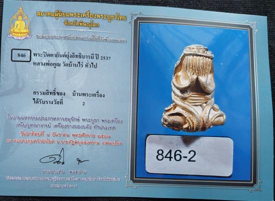 พระปิดตาหลวงพ่อคูณ วัดบ้านไร่ รุ่นอิทธิบารมี เนื้อเงิน ปี 2537 (ตอก 2 โค้ด) พร้อมใบประกาศ ติดรางวัลที่ 2 งานจังหวัดพิษณุโลก (งานสมาคมฯ)