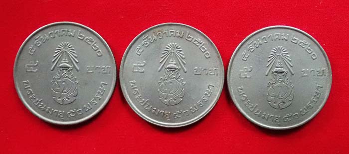 เหรียญ5บาท หลังภปร.ในหลวงร.9 "พระชนมายุ 50 พรรษา" 5 ธันวาคม ปี 2520