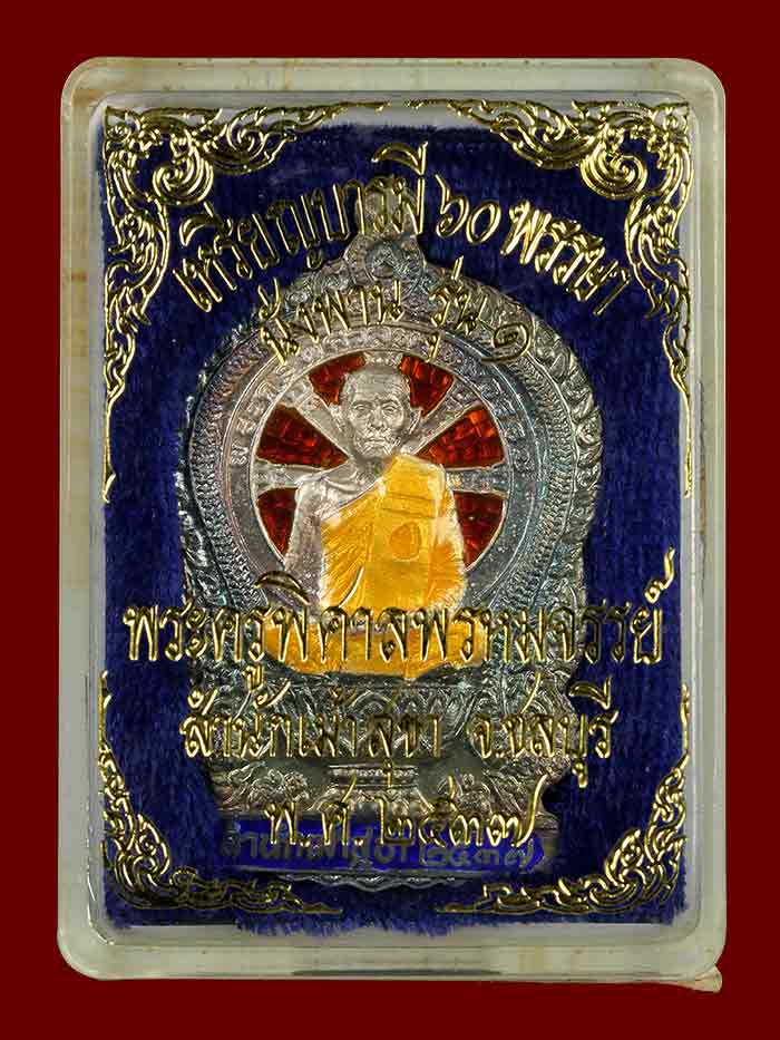 วัดใจ เหรียญนั่งพานรุ่นแรก หลวงพ่อสวัสดิ์ วัดเม้าสุขา เนื้อเงินลงยา ปี37 สภาพสวยเดิมตากล่อง เลข41