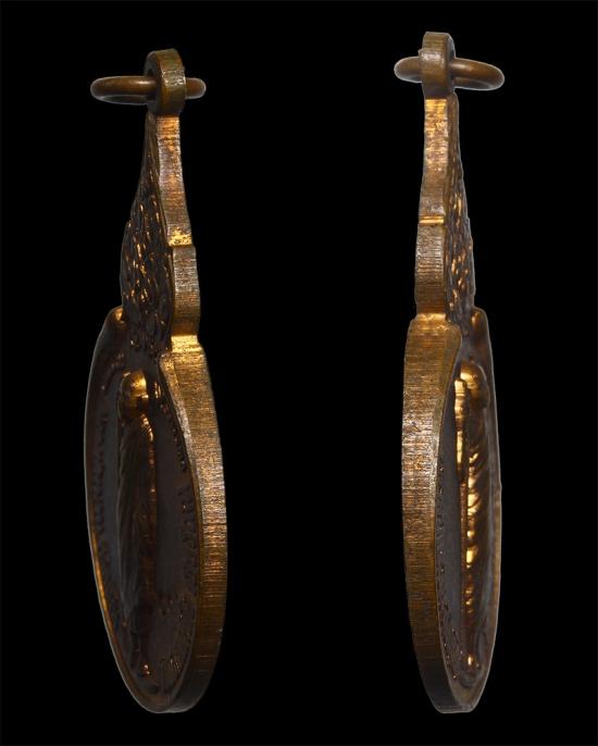 เหรียญยืนร่วมใจ หลวงปู่แหวน วัดดอยแม่ปั๋ง จ.เชียงใหม่ สร้างปี 2518 ตอกโค๊ต |
