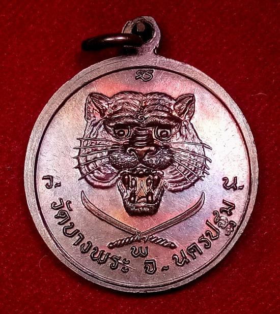 เหรียญ กลมหลวงพ่อเปิ่น วัดบางพระ นครปฐม หลังหน้าเสือ ดาบไขว้ ปี 2536 |