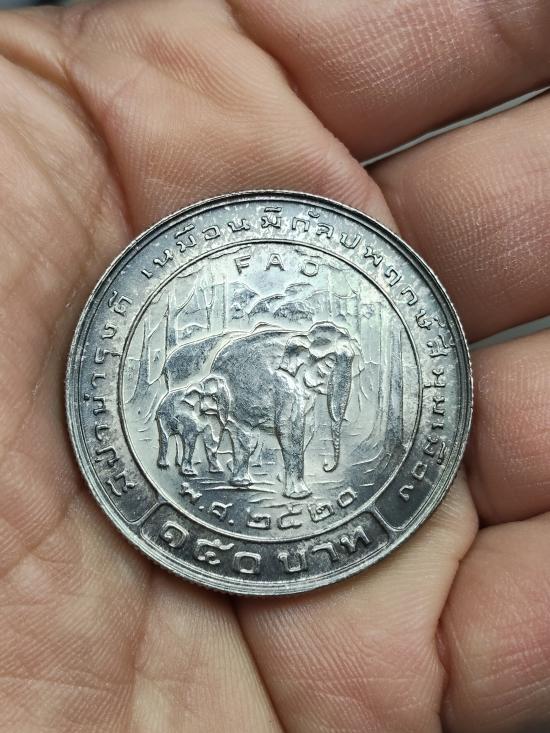 เหรียญกษาปณ์ที่ระลึก 150 บาท ในหลวงโปรยข้าวปี 2520 เนื้อเงิน ผิวเดิมๆ UNC |
