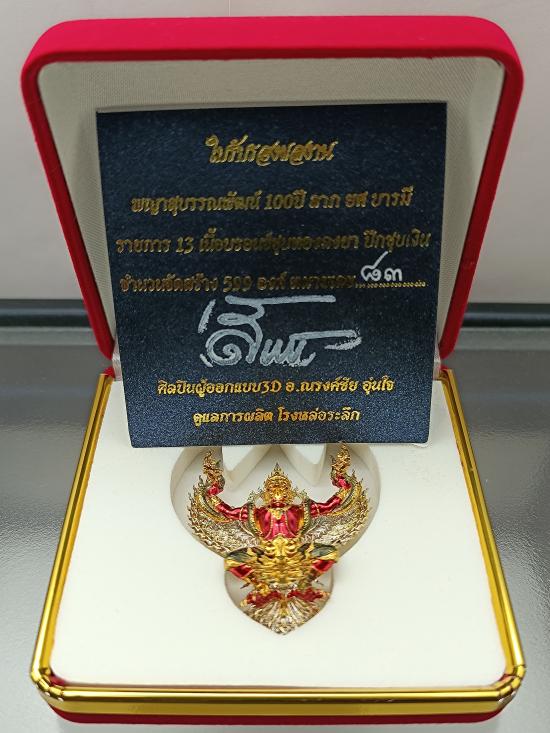 @@ พุทธศิลป์ พญาสุบรรณพัฒน์ 100 ปี ลาภ ยศ บารมี หลวงพ่อพัฒน์ ปุญฺญกาโม วัดห้วยด้วน อ.หนองบัว จ.นครสวรรค์ เนื้อบรอนซ์ชุบทองลงยา ปีกชุบเงิน หมายเลข 83 พร้อมกล่อง+ใบรับรองผลงานครับ