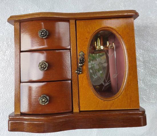 ตู้เครื่องประดับ ขนาดเล็ก เนื้อไม้วินเทจญี่ปุ่น งานฝีมือเก่า 3 ลิ้นชัก 1 บานเปิด ขนาด กว้าง 22 ลึก 12 สูง 18 CM.