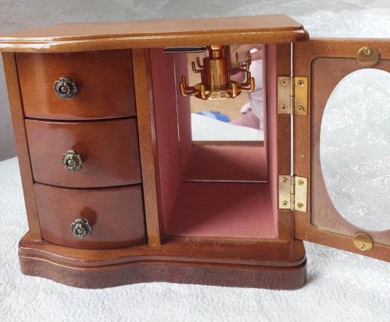 ***วัดใจ***กล่องเครื่องประดับ ขนาดเล็ก เนื้อไม้วินเทจญี่ปุ่น งานฝีมือเก่า 3 ลิ้นชัก 1 บานเปิด ขนาด กว้าง 22 ลึก 12 สูง 18 CM. |