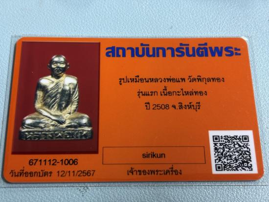 รูปเหมือนหลวงพ่อแพ ปี08 วัดใจแบ่งเพื่อนสมาชิก พร้อมบัตรรับรอง