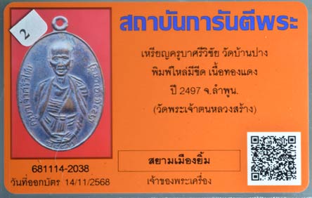 ครูบาศรีวิชัย วัดบ้านปาง ปี2497 ออกวัดพระเจ้าตนหลวง พิมพ์บ่าขีด เคาะเดียว |