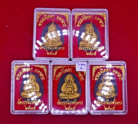 !!!!วัดใจ 9 บาท!!!! 5 องค์ พระผงปิดตา มหาลาภ ญสส วัดบวรนิเวศวิหาร พ.ศ.2535 เนื้อผงใบลาน(ดำ) ปัดทอง กล่องเดิม |