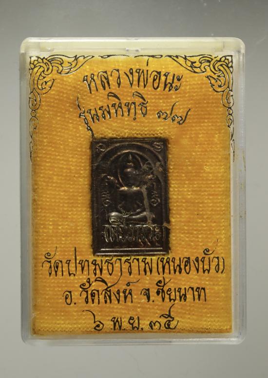 เหรียญบัวไขว้ รุ่นมหิทธิ 77 หลวงปู่นะ วัดหนองบัว จ.ชัยนาท ปี2535เนื้อนวะ พร้อมกล่อง แดง120 |