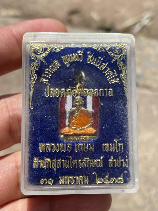 100 หลวงพ่อเกษม เขมโก เหรียญกินบ่เสี้ยง เฮง เฮง กะไหล่ทองลงยาสีธงชาติ ปี 2538 |