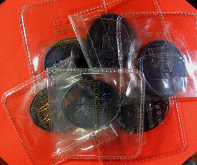 เหรียญสมเด็จพระเจ้าตากสินมหาราช (ทรงม้า) จัดสร้างโดยเขตคลองสาน ปี37 เนื้อทองแดงผิวรุ้ง ซองเดิม 6 เหรียญ |