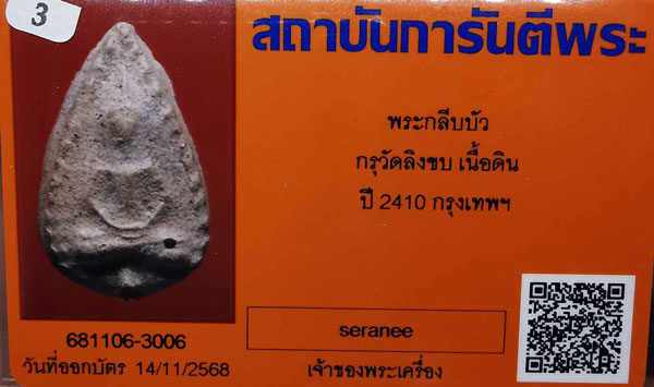 พระกลีบบัว กรุวัดลิงขบ เนื้อดิน ปี2410 จ.กรุงเทพฯ + บัตรG-pra สภาพเดิมค่ะ