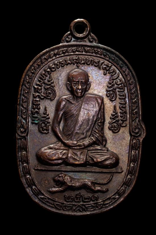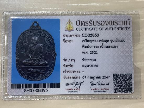 (เคาะแดง3900) +บัตรสมาคม เหรียญเสือเผ่น หลวงพ่อสุด วัดกาหลง หางงอ 2521