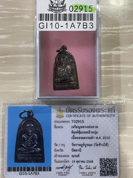 (เคาะแดง3900) +บัตรสมาคม เหรียญหลวงปู่ทวด ซุ้มกอหน้าหนุ่ม วัดช้างไห้ 2510