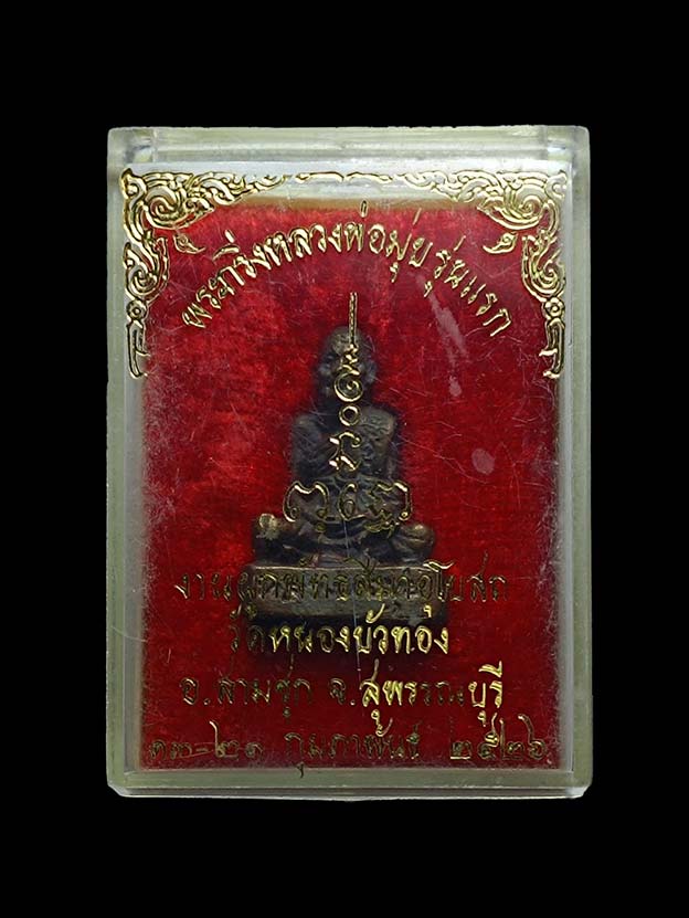 รูปเหมือน หลวงพ่อมุ่ย ออกในงานผูกพัทธสีมาอุโบสถวัดหนองบัวทอง อ.สามชุก จ.สุพรรณบุรี ปี พ.ศ.2526 ก้นอุดกริ่ง เสียงดัง กล่องเดิมๆ |