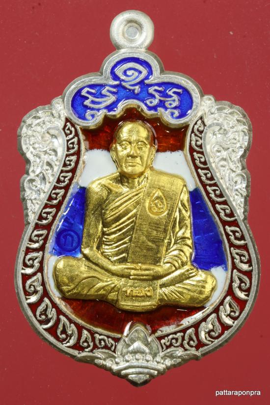 เหรียญเสมา หลวงพ่อทอง รุ่นทองสิบทิศ ปี 2563 เนื้อเงินหน้ากากทองคำ ลงยาสีธงชาติ หมายเลข 54