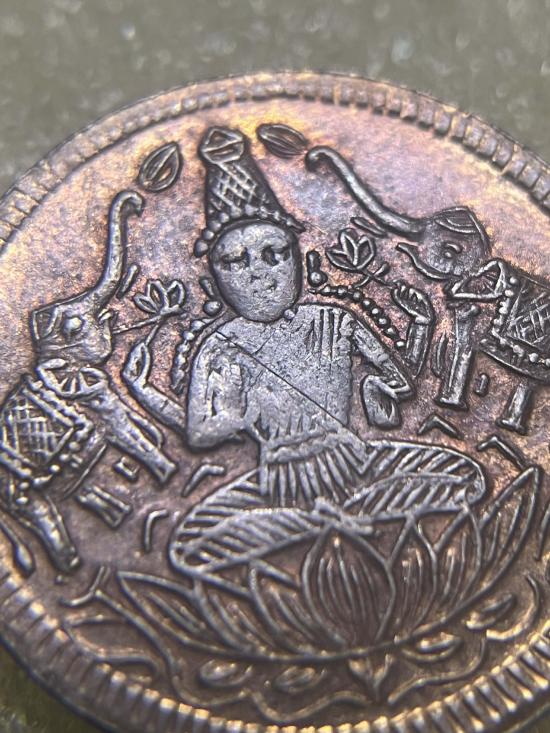 เหรียญพระแม่ลักษมี ยันต์ศรีจักรกา วัดแขก บล็อกอินเดีย ปี 2540 |