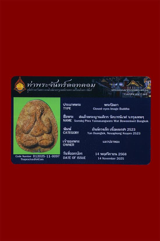 พระปิดตายันต์ดวงเล็ก ปี2523 สมเด็จพระญาณสังวร (เจริญ) วัดบวรนิเวศ_เนื้อผงเกสร_ พร้อมบัตรรับรองท่าพระจันทร์ดอทคอม