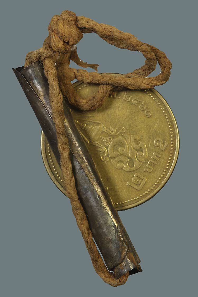 วัดใจ**เครื่องราง ตะกรุดเนื้อเงินเก่า ยาว 1.5นิ้ว ไม่ทราบที่ พร้อมเชือก....ตามสภาพครับ |