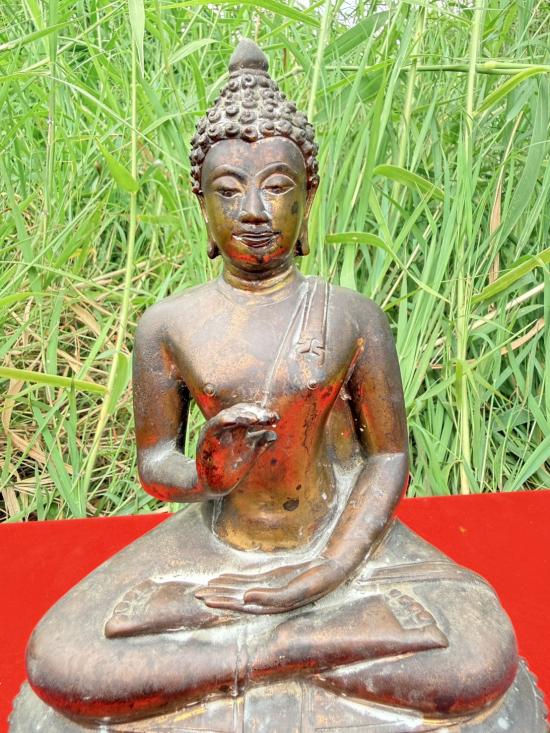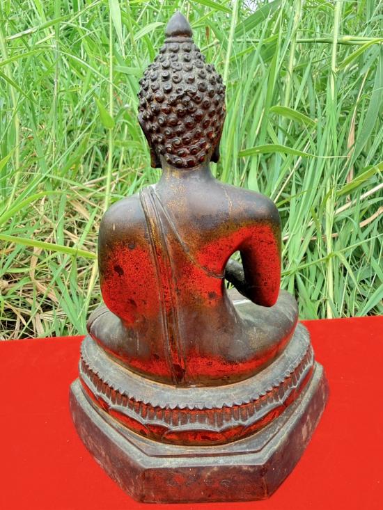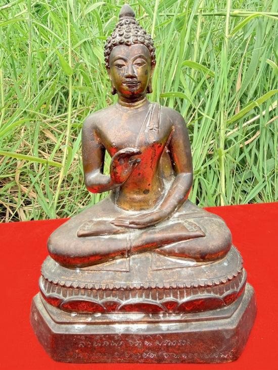พระบูชาพุทธะเชียงแสนหน้าตัก 5 นิ้วสำนักฝึกจิตนิมิตธรรมของนครราชสีมาปี 2524 เนื้อโลหะ สูง 9 นิ้วจัดไปคับ |