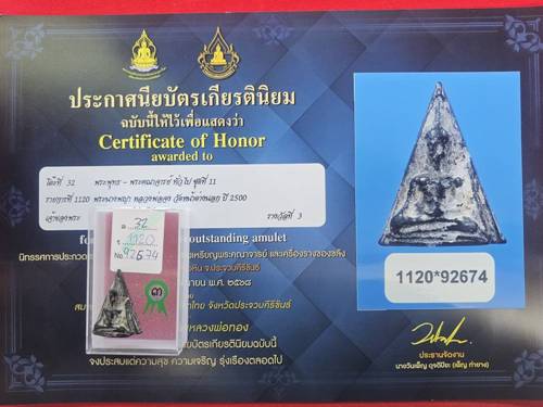 พระนางพญา พิมพ์หลังอุ หลวงพ่อจง วัดหน้าต่างนอก เนื้อผงใบลาน ปี2500 ติดรางวัลที่3 งานสมาคมพระเครื่องพระบูชาไทย |