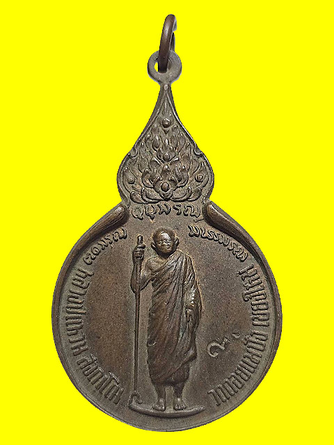 ***เหรียญยืนถือไม้เท้าหลวงปู่แหวน สุจิณฺโณ หลังรวมใจ เนื้อทองแดง ตอกโค๊ต ปี 2518 วัดดอยแม่ปั๋ง อ.พร้าว จ.เชียงใหม่ ***